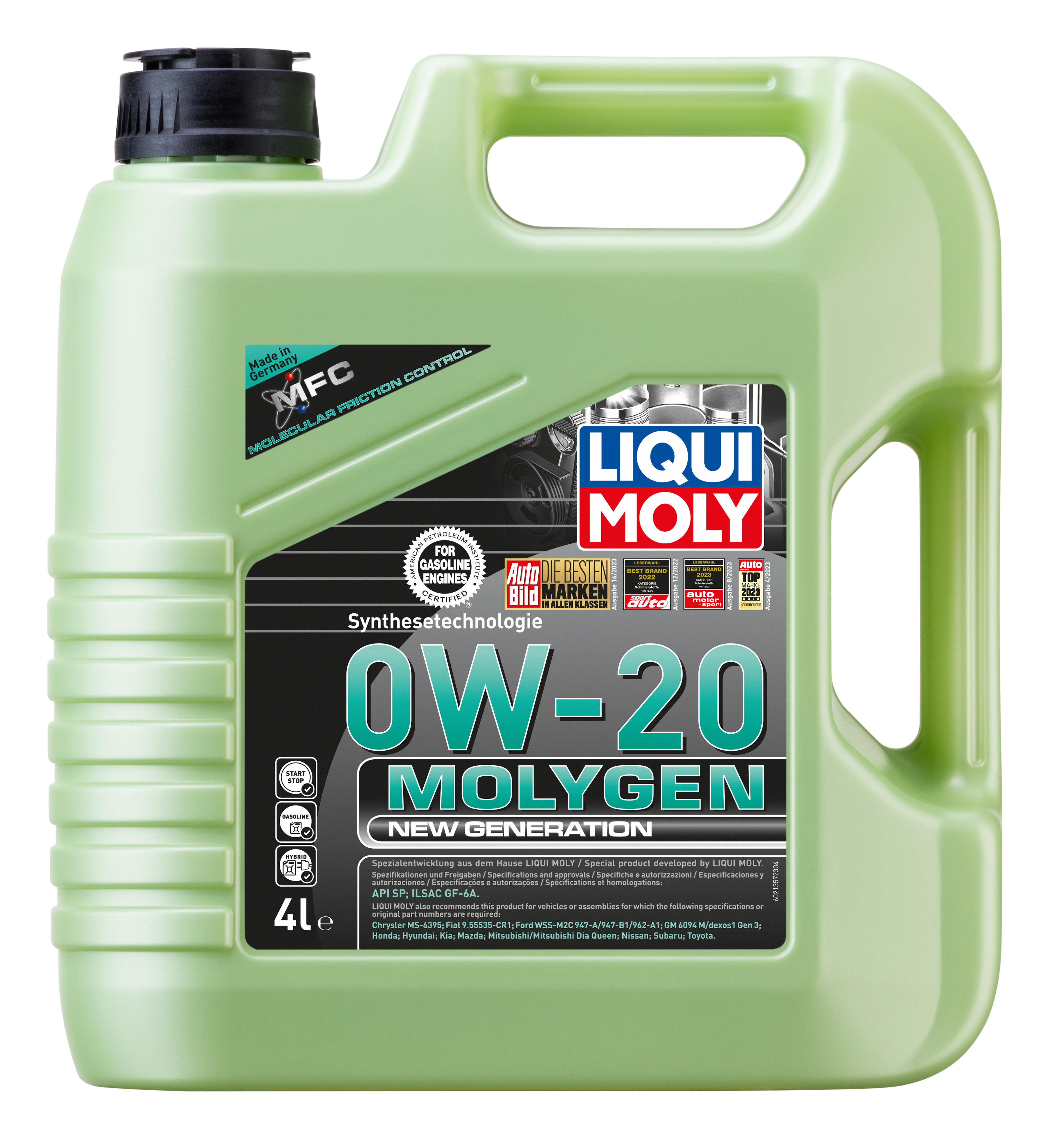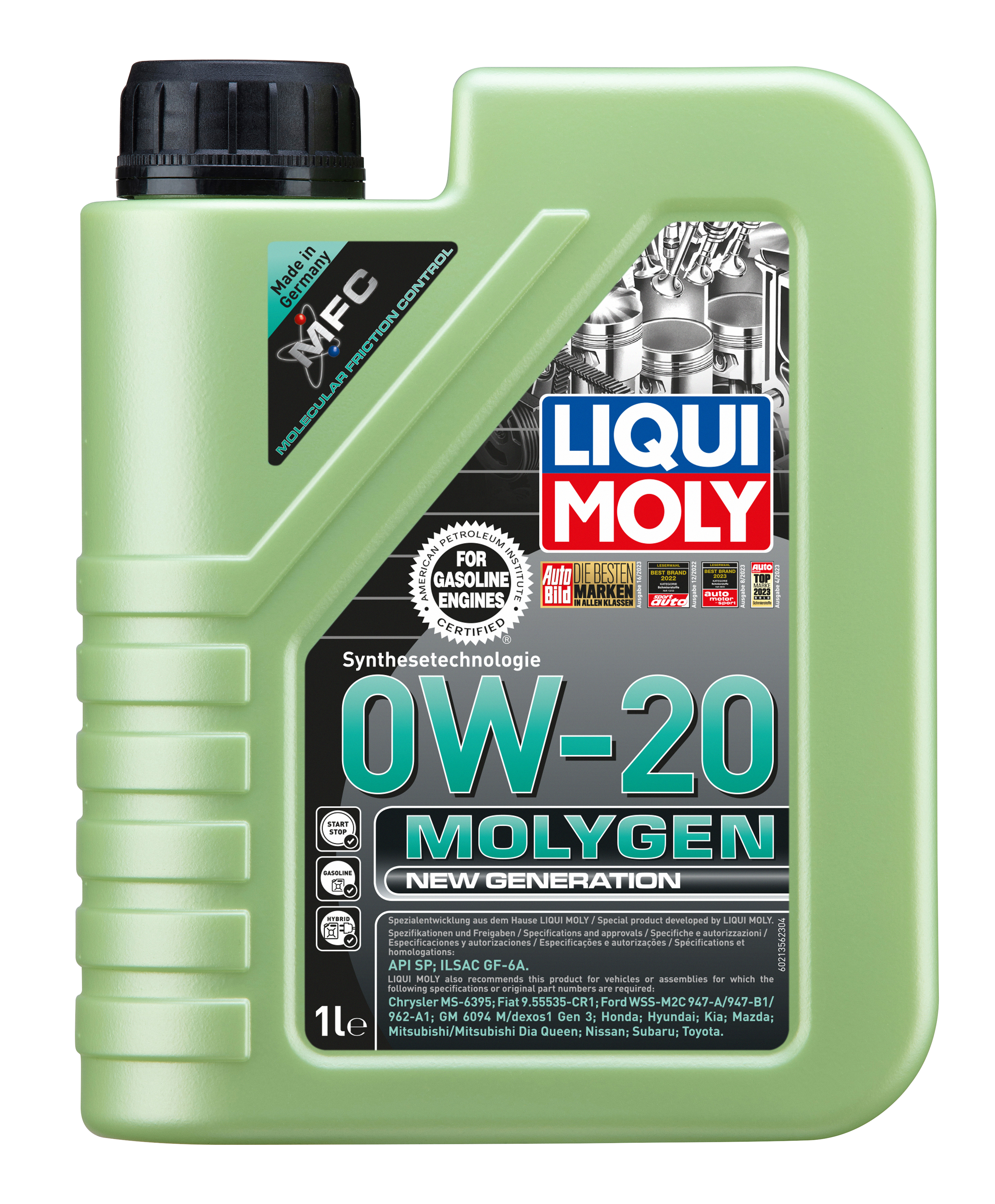 Aceite antifricción de alto rendimiento para motores para utilizar durante todo el año. La combinación de aceites básicos no convencionales con la tecnología de aditivos más avanzada, así como con el aditivo especial Molygen, garantiza un aceite de motor de baja viscosidad y alta resistencia al cizallamiento que evita de forma segura que se formen depósitos, disminuye la pérdida de potencia del motor por rozamiento y proporciona una protección óptima contra el desgaste. Ello reduce el consumo de combustible a la vez que prolonga la vida útil del motor. Ideal para motores gasolina modernos del mercado asiáticos y americano con tecnología multiválvulas, con turbocompresión y con y sin refrigeración del aire de admisión (LLK). Para proteger el motor y mantener su valor en caso de intervalos de cambio de aceite prolongados y altos requerimientos.