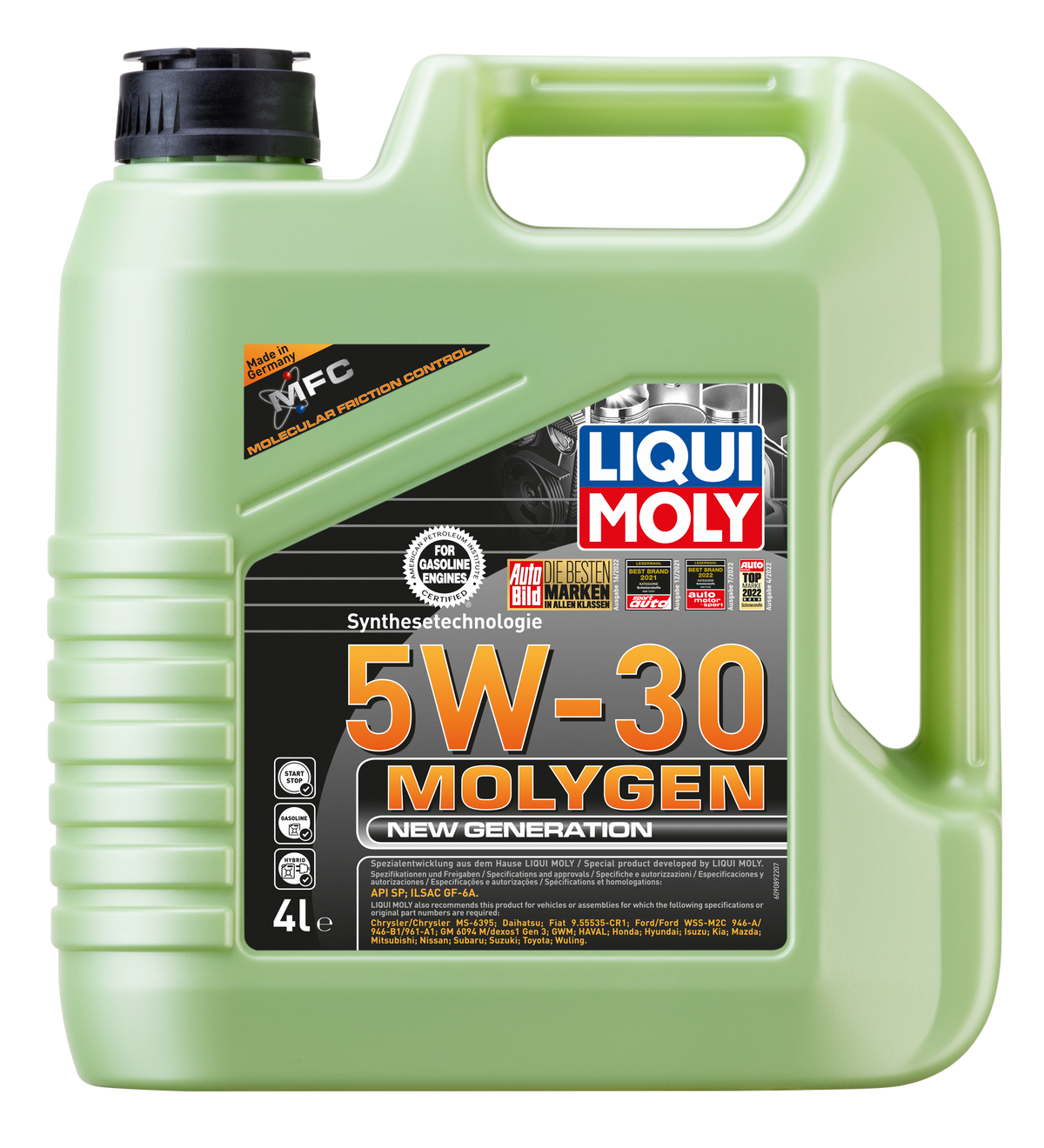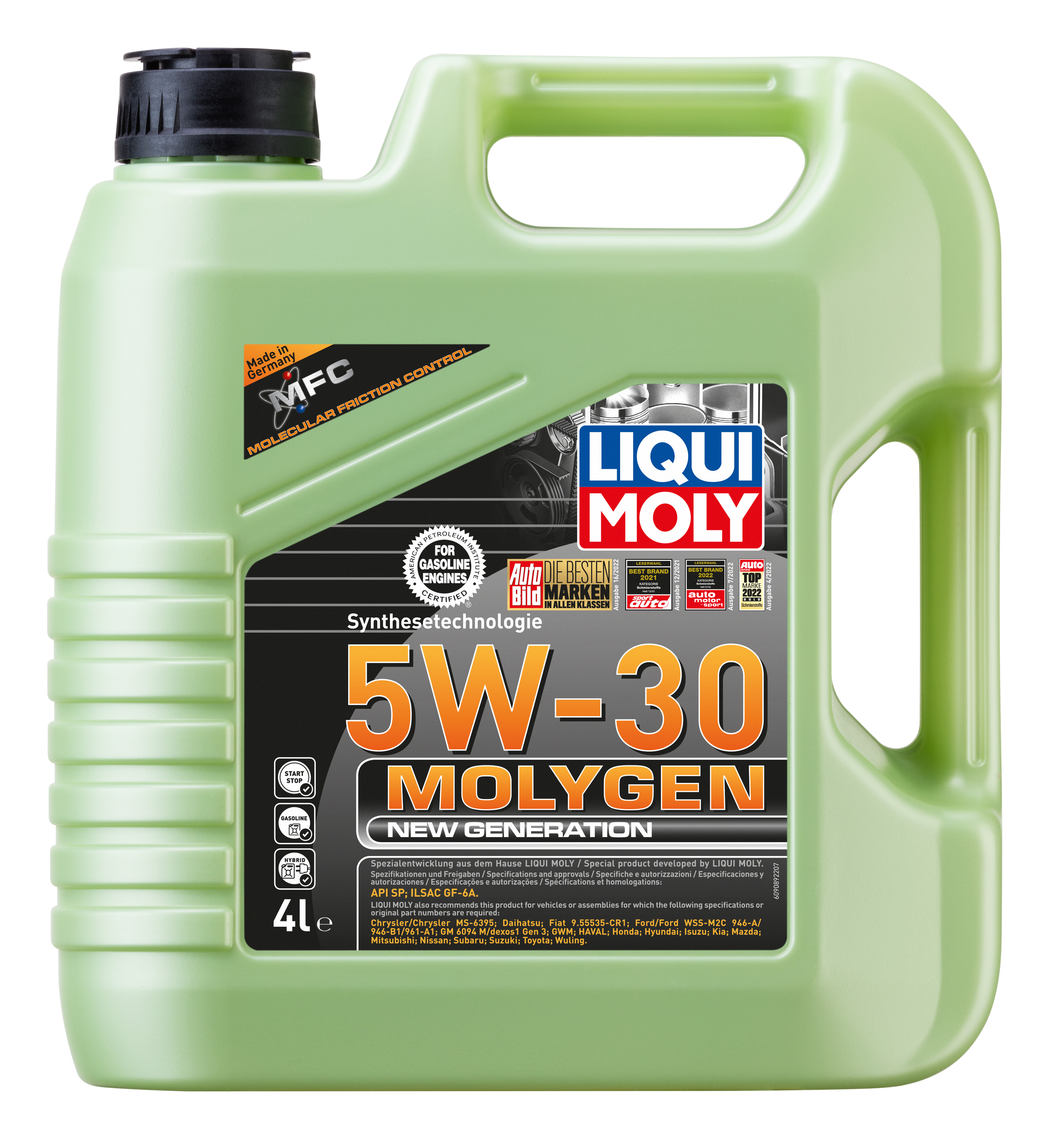 Aceite de motor antifricción de alta tecnología con baja viscosidad y alta estabilidad al cizallamiento. Combinado con tecnología de aditivos innovadora y el aditivo especial Molygen. Evita con seguridad la formación de depósitos, reduce la pérdida de potencia del motor por rozamiento y protege de forma óptima contra el desgaste. De esta forma se reduce el consumo de combustible y se prolonga la vida útil del motor.